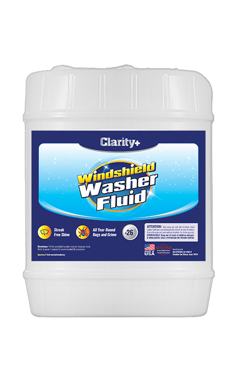 Maintain a crystal-clear view with Clarity+ Windshield Wiper Fluid, the ultimate windshield cleaning solution for all seasons. Perfect for removing bug splatter, grime, and dirt, Clarity+ provides a streak-free shine that enhances visibility and safety. Suitable for use in temperatures of 26°F or warmer, this versatile fluid is available in 5-gallon buckets, 55-gallon drums, and 275-gallon totes to meet the needs of any fleet or facility.